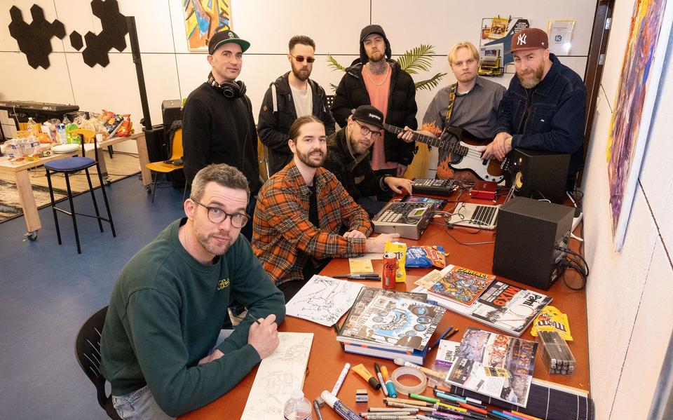 In december vorig jaar werkte het collectief Hiphop Comics binnen 24 uur aan het bedenken van een verhaal, het tekenen van de strip en het schrijven en opnemen van de muziek. Foto: Fotostudio Wierd.