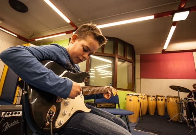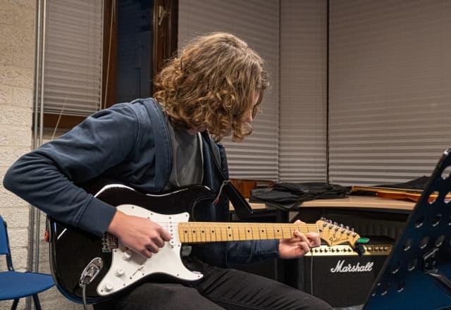 Met onze cursus elektrische gitaar leer je de benodigde vaardigheden en technieken om je eigen sound te creëren en te experimenteren met verschillende stijlen. Sluit je versterker aan, doe je koptelefoon op en oefen er lekker op los zonder je buren lastig te vallen. Onze gepassioneerde docenten staan klaar om je te begeleiden en te inspireren. Laat de elektrische gitaar jouw hart veroveren!
