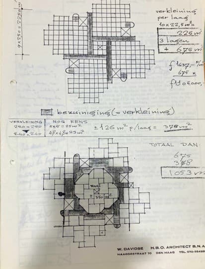 1978, december: definitief ontwerp waarin de stramienmaat met 10 centimeter is teruggebracht (van 250×250 cm naar 240×240) en de toekomstige optie van een extra verdieping is geschrapt. Zie beeld schetsontwerp.