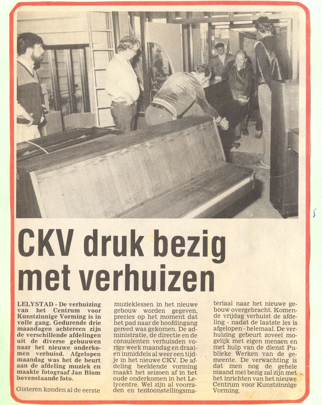 - 1977: oprichting Centrum voor Kunstzinnige Vorming (CKV). Lessen in diverse noodgebouwen. Meer weten over het begin van het CKV, klik hier.