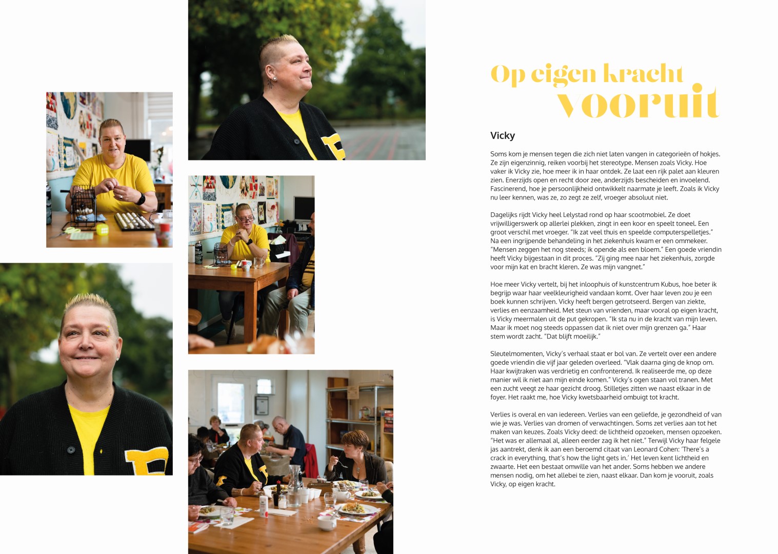 ‘Levenskracht’ is een reizende expositie die zowel binnen als buiten Lelystad te zien zal zijn. De expo toont tien mensen en tien verhalen. Verhalen over wilskracht en verlies, migratie en autonomie; verhalen over altijd maar doorgaan en zoeken naar rust.