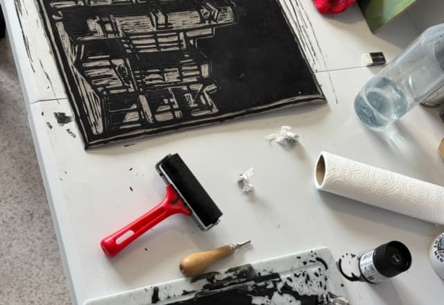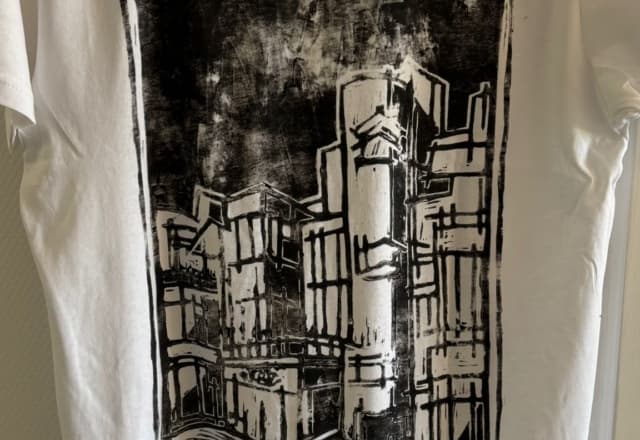 Onze ontwerpen worden met de hand gedrukt via linosnede, een ambachtelijke druktechniek waarbij een ontwerp in spiegelbeeld wordt uitgesneden in linoleum, daarna met textielinkt wordt ingerold en met de hand op stof wordt gedrukt. Na het drogen wordt de print verhit, zodat hij mooi en was bestendig blijft. De opdruk is zwart, strak, stoer en eigentijds, precies zoals De Kubus.