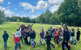 Naar aanleiding van een verhaal oefenen de leerlingen het spelen van een toneelstuk. Dit doen ze binnen het thema ‘In het bos’.
