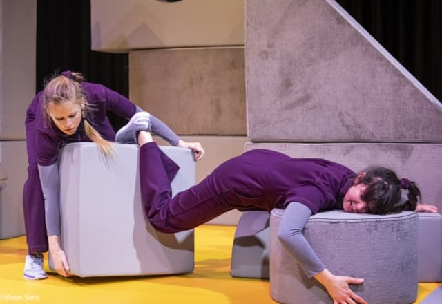 ‘Van mij!’ is een speelse, beeldende en fysieke voorstelling met grote, abstracte vormen vol mogelijkheden. Geïnspireerd op de peuterfase waarin kinderen ontdekken dat iets ‘van mij’ is, maar dat de wereld ook groter is dan alleen zijzelf. Een ode aan het samenspelen en aan de eindeloze fantasie van kinderen. Een humorvolle, licht brutale, maar liefdevolle ontdekkingstocht over mijn en dijn.