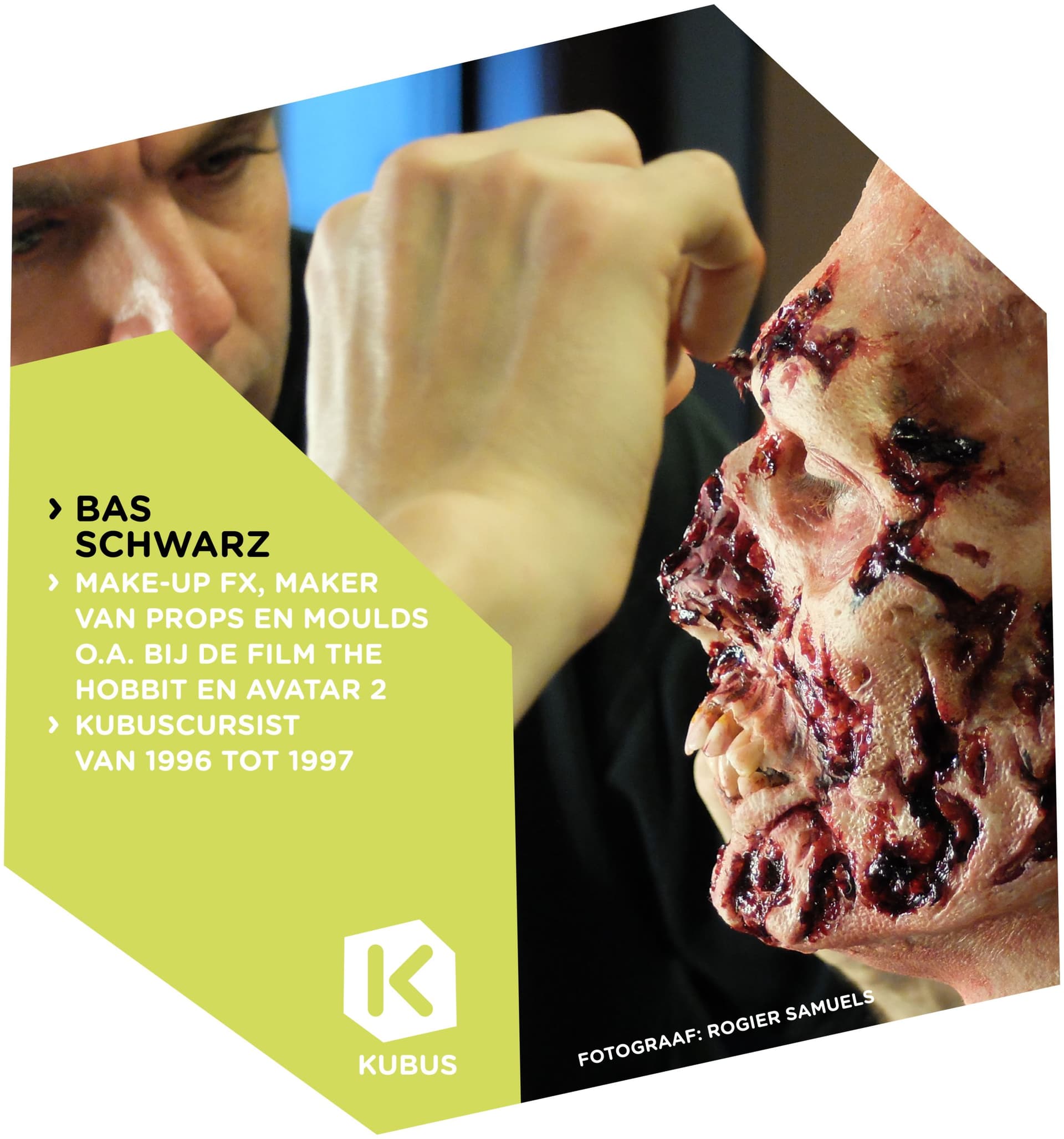 Bas Schwarz is van vele markten thuis. Hij maakt modellen, mallen en props en is specialist in Special Effects make-up (Make-Up FX). In 1996/1997 kwam hij bij Kubus en volgde bij docent Ellen Wenniger de cursus Grimeren basis & gevorderden. Make-up bleek een passie waarin hij zich professioneel wilde ontwikkelen.